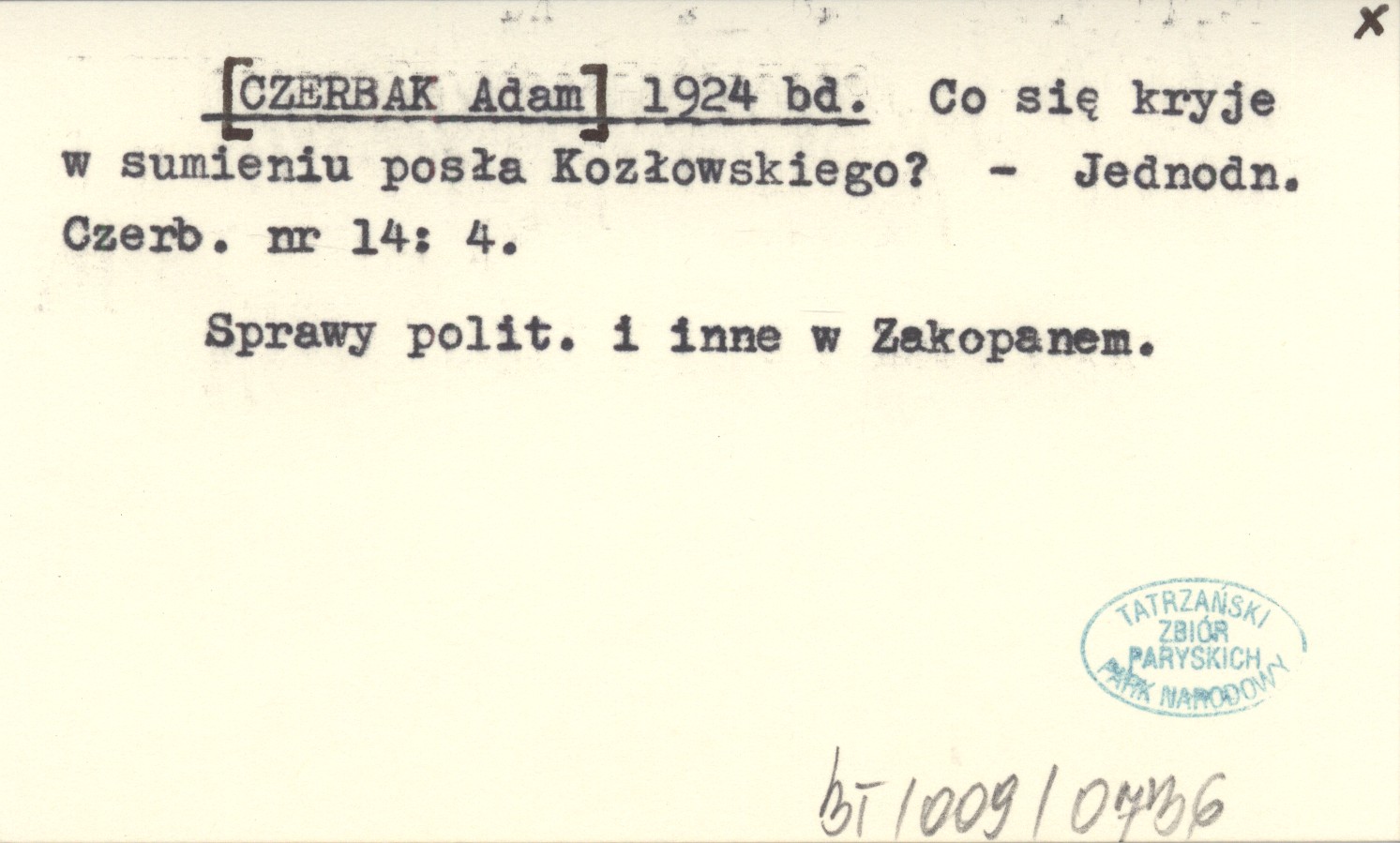 [CZERBAK Adam] 1924 bd Co się kryje w sumieniu posła Kozłowskiego?