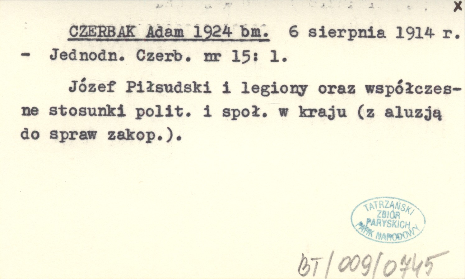 Jednodniówka Czerbaka, Nr 15: 1. Józef Piłsudski i legiony oraz współczesne stosunki polityczne i społeczne w kraju (z aluzją do spraw zakopiańskich).
