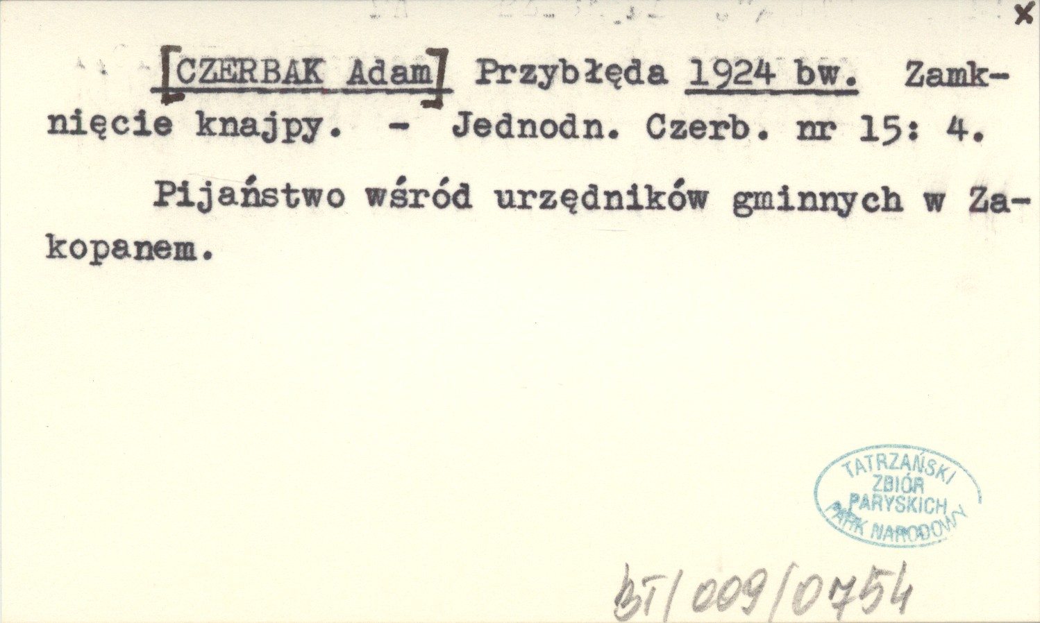 Jednodniówka Czerbaka, Nr 15: 4. Pijaństwo wśród urzędników gminnych w Zakopanem.