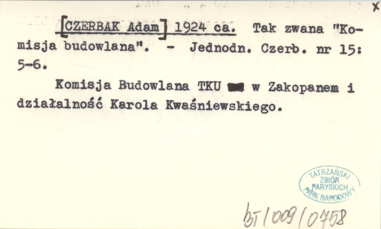 Jednodniówka Czerbaka, Nr 15: 5-6. Komisja Budowlana TKU w Zakopanem i działalność Karola Kwaśniewskiego.