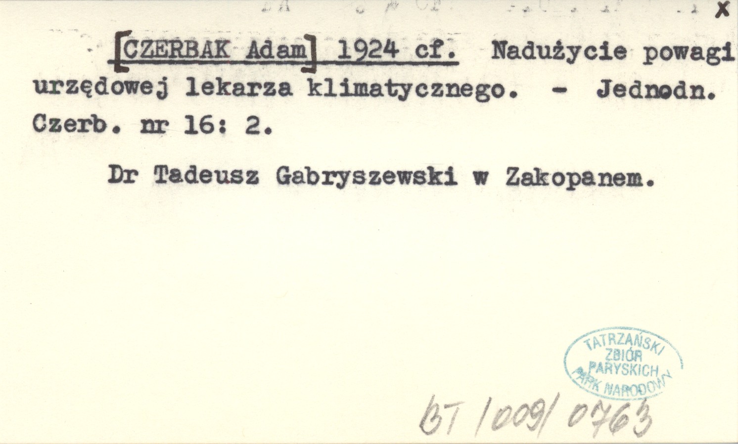 Jednodniówka Czerbaka, Nr 16: 2. Dr Tadeusz Gabryszewski w Zakopanem.