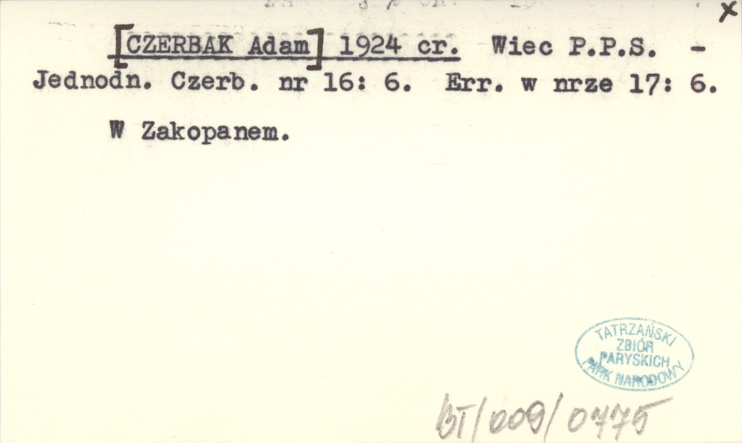 Jednodniówka Czerbaka, Nr 16: 6; err. nr 17: 6. W Zakopanem.