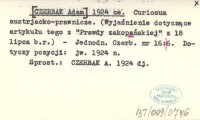 [CZERBAK Adam] 1924 cs Curiosum austrjacko-prawnicze. (Wyjaśnienie dotyczące artykułu tego z "Prawdy zakopańskiej" z 18 lipca b.r.).