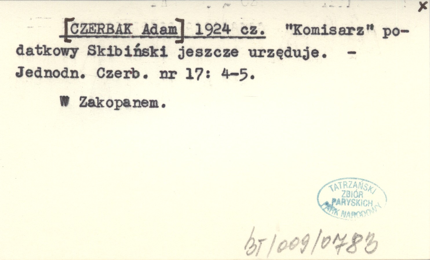 [CZERBAK Adam] 1924 cz "Komisarz" podatkowy Skibińśki jeszcze urzęduje.