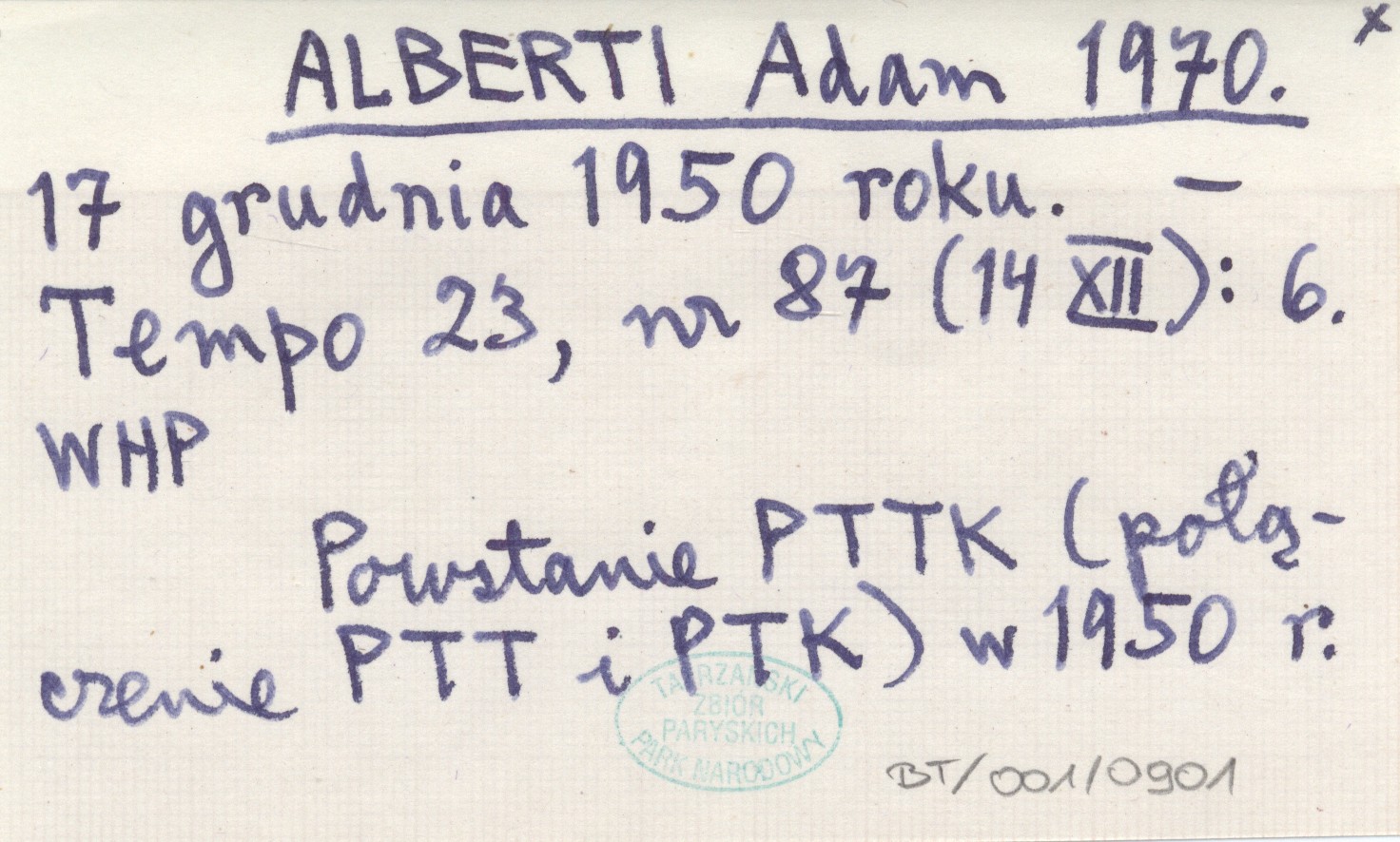 Tempo, 23, nr 87 (14 XII): 6. Powstanie PTTK (połączenie PTT i PTK) w 1950 r.