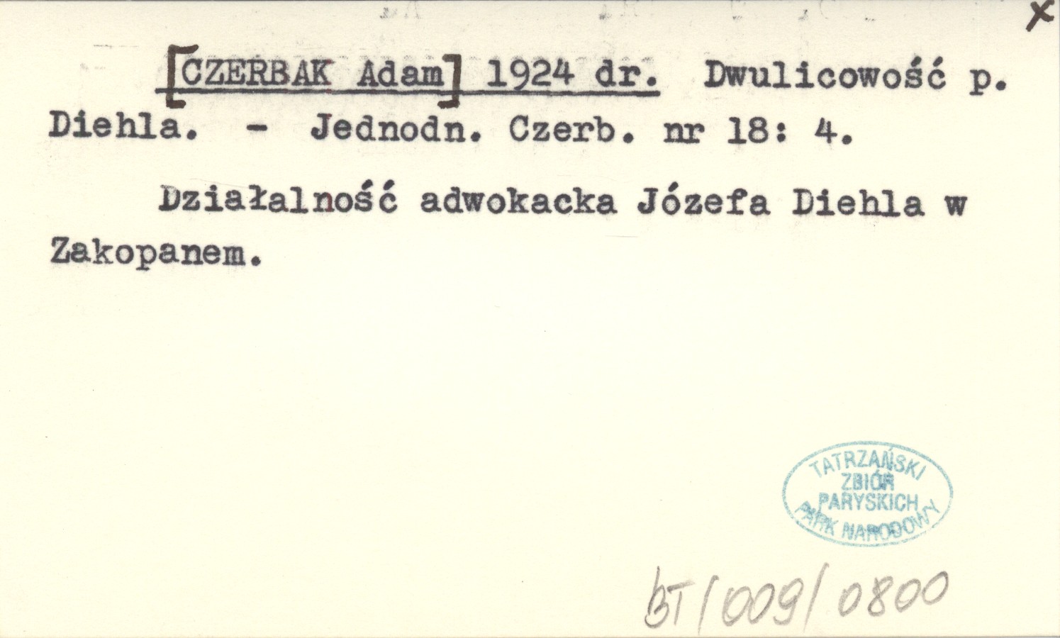 Jednodniówka Czerbaka, Nr 18: 4. Działalność adwokacka Józefa Diehla w Zakopanem.