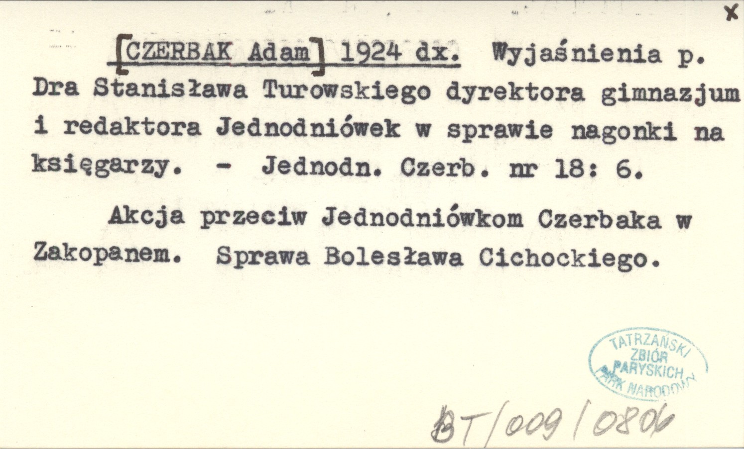 [CZERBAK Adam] 1924 dx Wyjaśnienia p. Dra Stanisława Turowskiego dyrektora gimnazjum i redaktora Jednodniówek w sprawie nagonki na księgarzy.