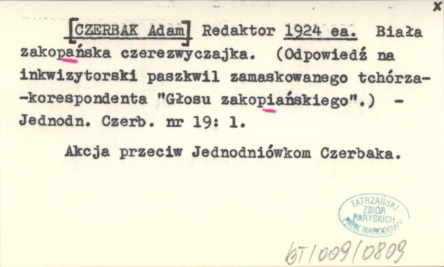 Redaktor [CZERBAK Adam] 1924 ea Biała zakopańska czerezwyczajka. (Odpowiedź na inkwizytorski paszkwil zamaskowanego tchórza-korespondenta "Głosu zakopiańskiego").