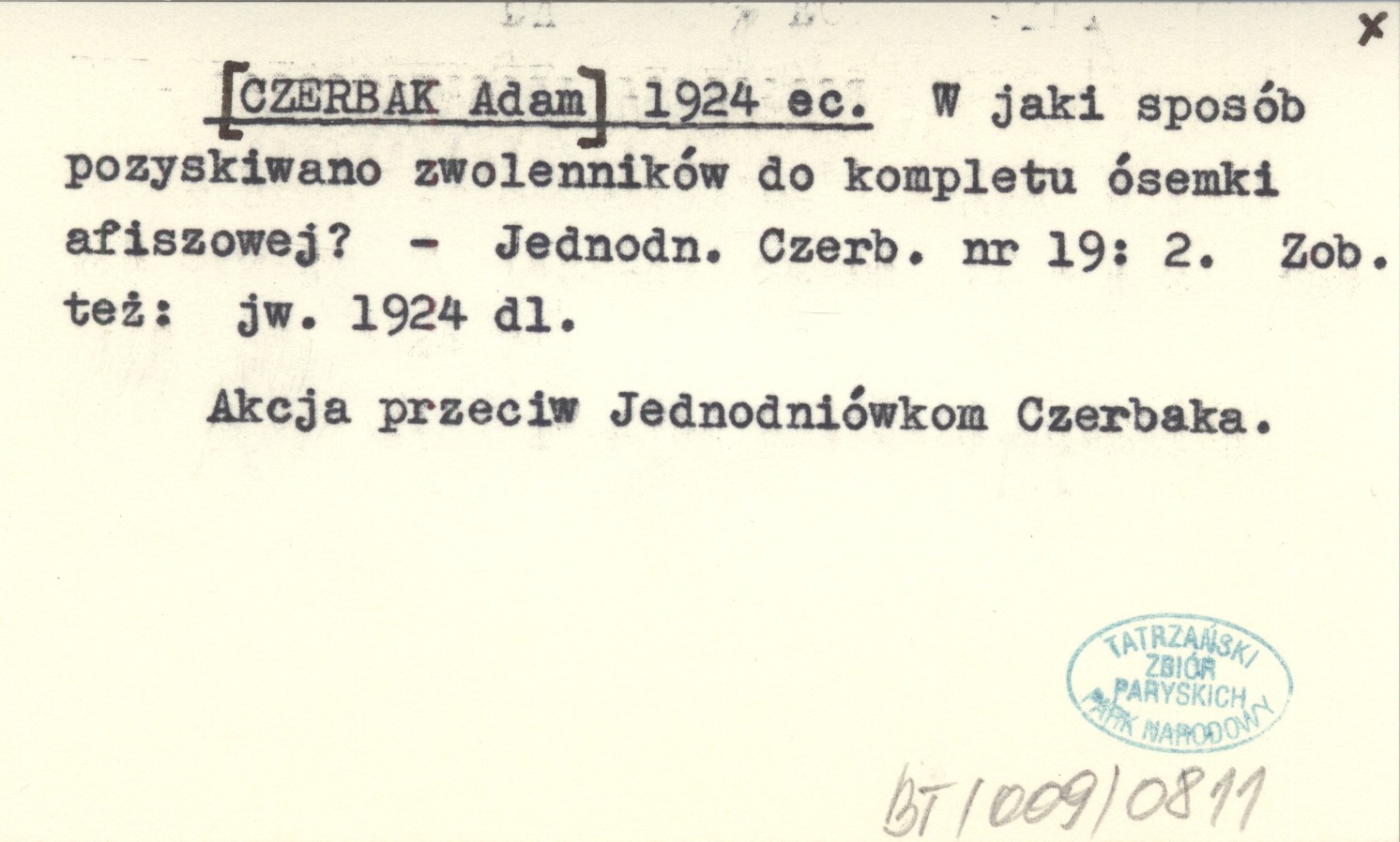 Jednodniówka Czerbaka, Nr 19: 2. Akcja przeciw Jednodniówkom Czerbaka. Zob. też: jw. 1924 dl.