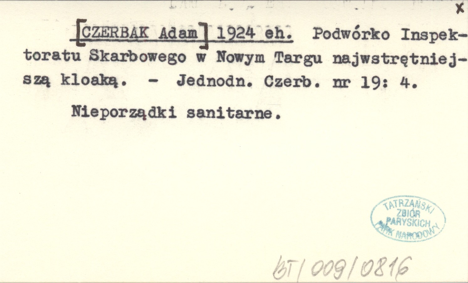 [CZERBAK Adam] 1924 eh Podwórko Inspektoratu Skarbowego w Nowym Targu najwstrętniejszą kloaką.