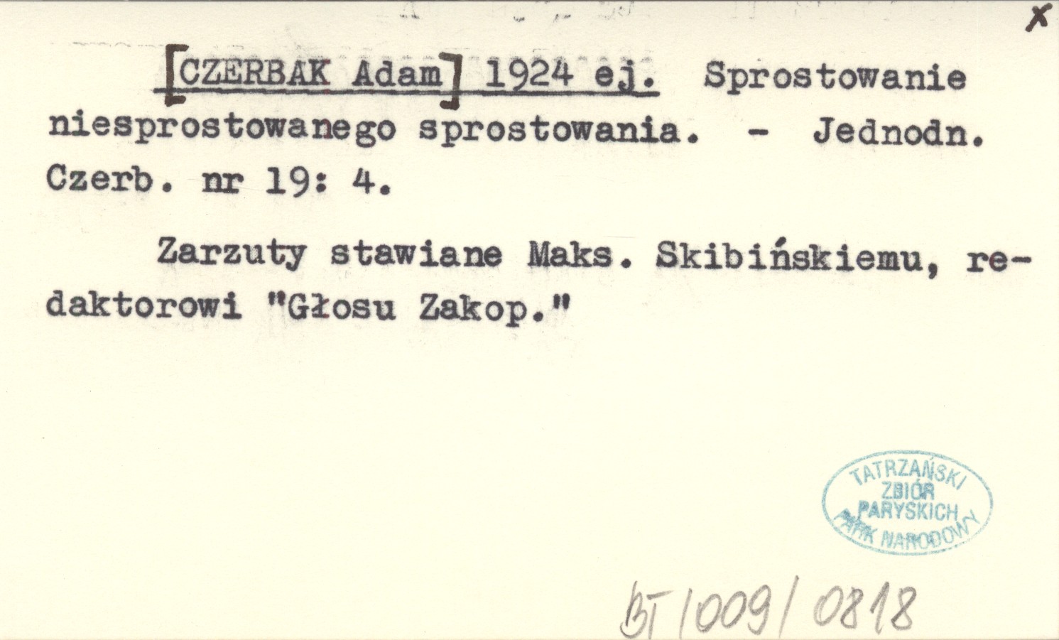Zarzuty stawiane Maks. Skibińskiemu, redaktorowi "Głosu Zakopiańskiego".