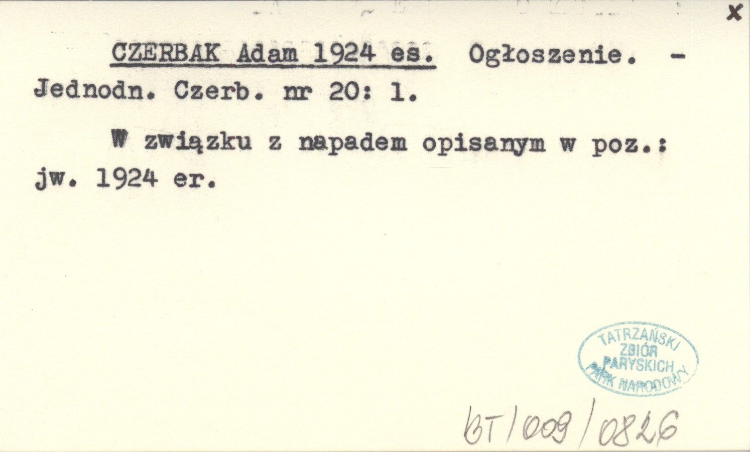 Jednodniówka Czerbaka, Nr 20: 1. W związku z napadem opisanym w poz.: jw. 1924 er.