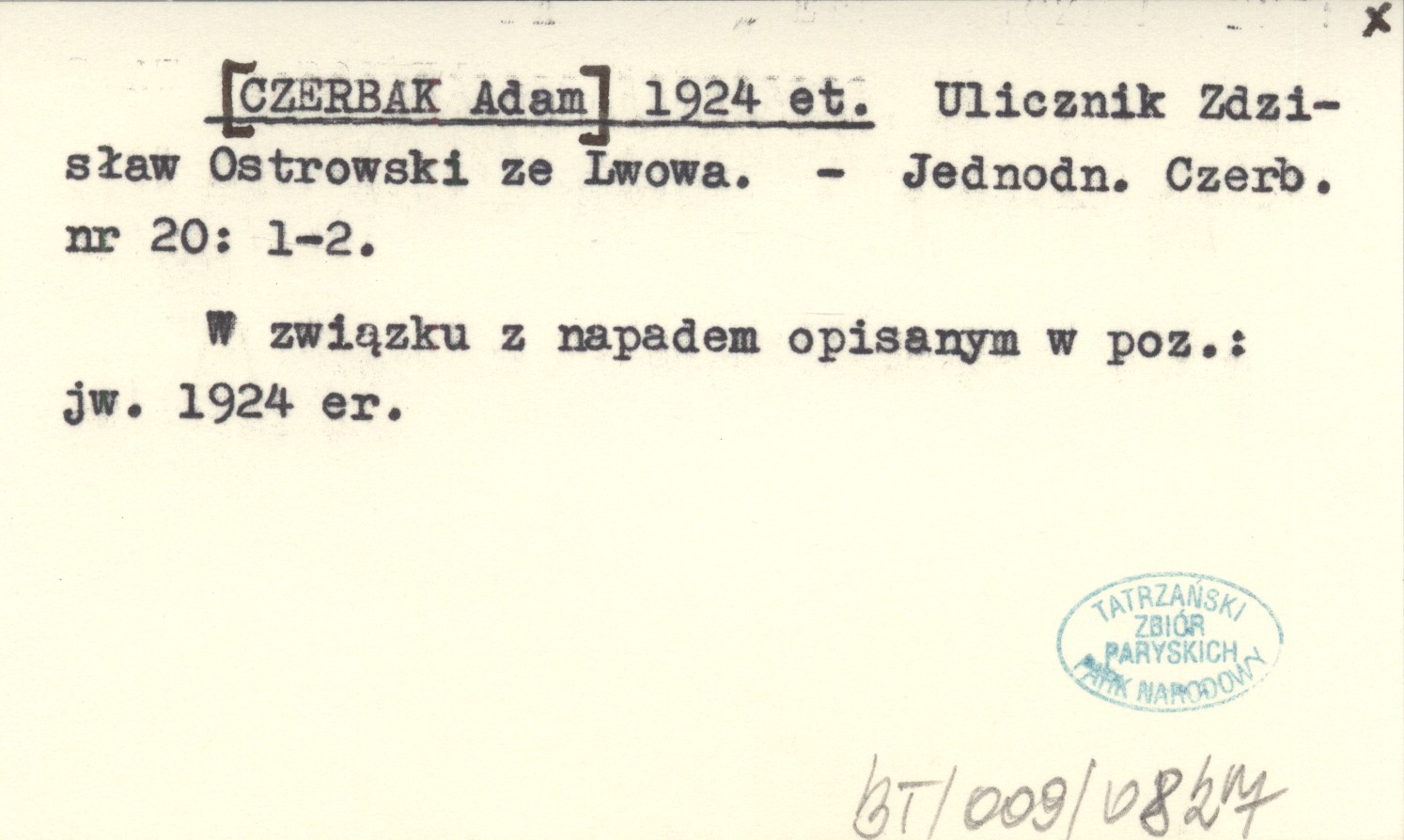 Jednodniówka Czerbaka, Nr 20: 1-2. W związku z napadem opisanym w poz.: jw. 1924 er.