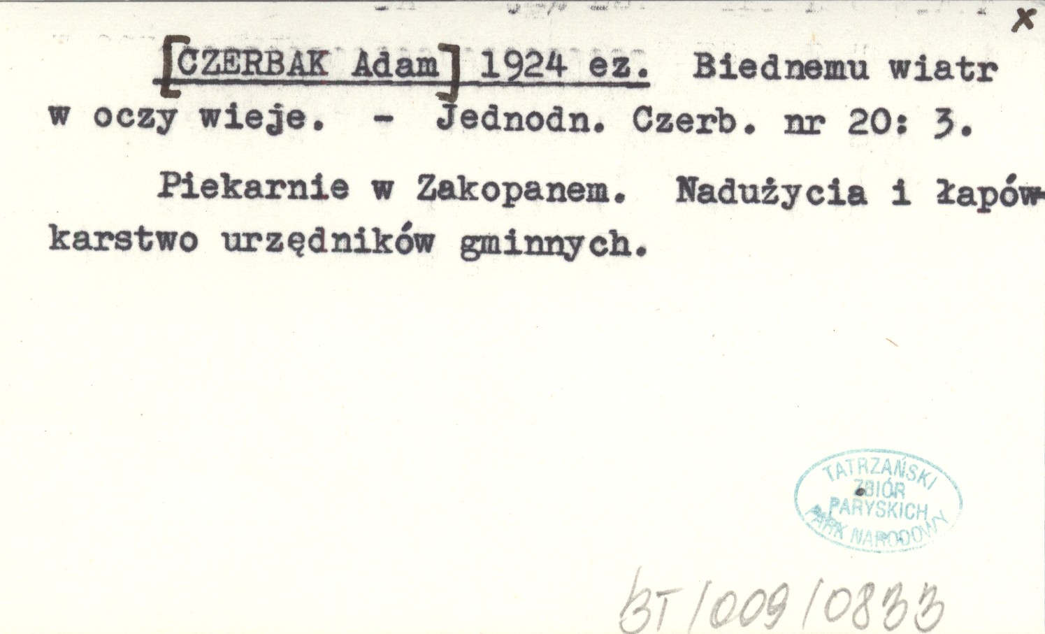 [CZERBAK Adam] 1924 ez Biednemu wiatr w oczy wieje.
