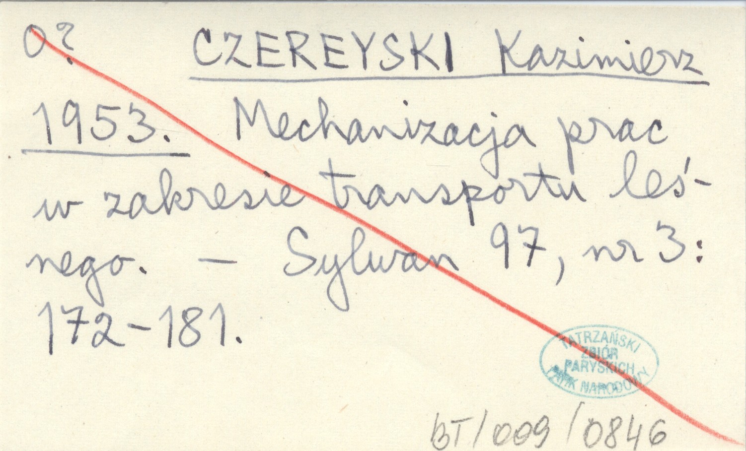 CZEREYSKI Kazimierz 1953 Mechanizacja prac w zakresie transportu leśnego.