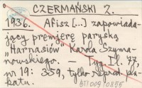 CZERMAŃSKI Z. 1936 Afisz [...] zapowiadający premjerę paryską "Harnasiów" Karola Szymanowskiego.