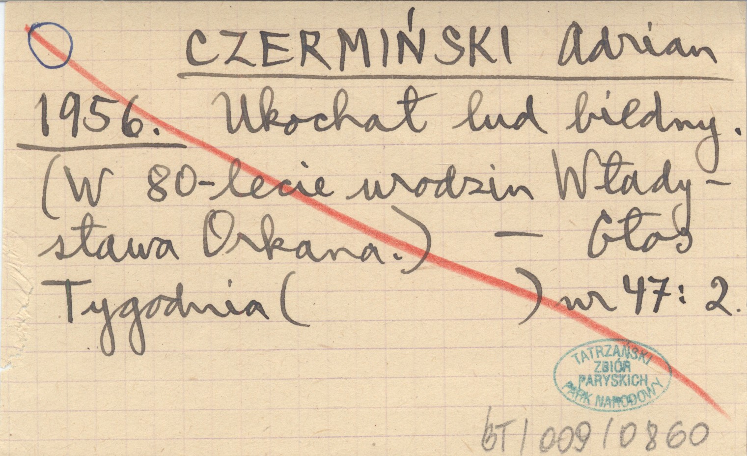 CZERMIŃSKI Adrian 1956 Ukochał lud biedny. (W 80-lecie urodzin Władysława Orkana).