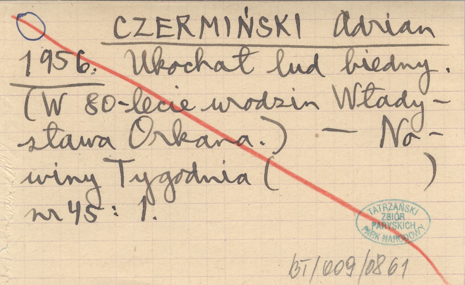 CZERMIŃSKI Adrian 1956 Ukochał lud biedny. (W 80-lecie urodzin Władysława Orkana).