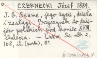 CZERNECKI Józef 1889 J. G. Seume, jego życie, dzieła i zasługi. Przyczynek do dziejów polskich pod koniec XVIII stulecia.