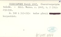 CZERNIAWSKI Karol 1847 Charakterystyka tańców.