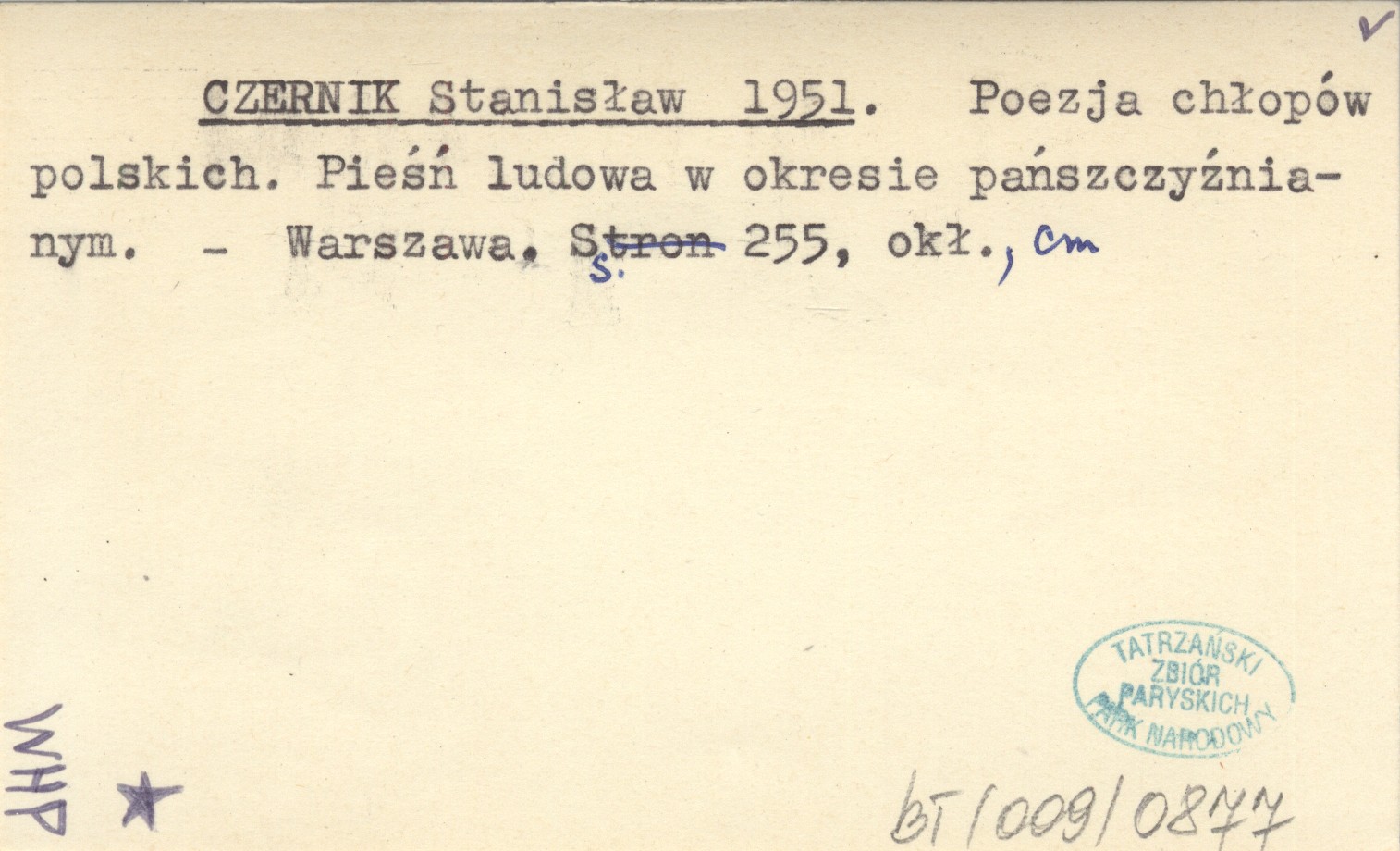 CZERNIK Stanisław 1951 Poezja chłopów polskich. Pieśń ludowa w okresie pańszczyźnianym.