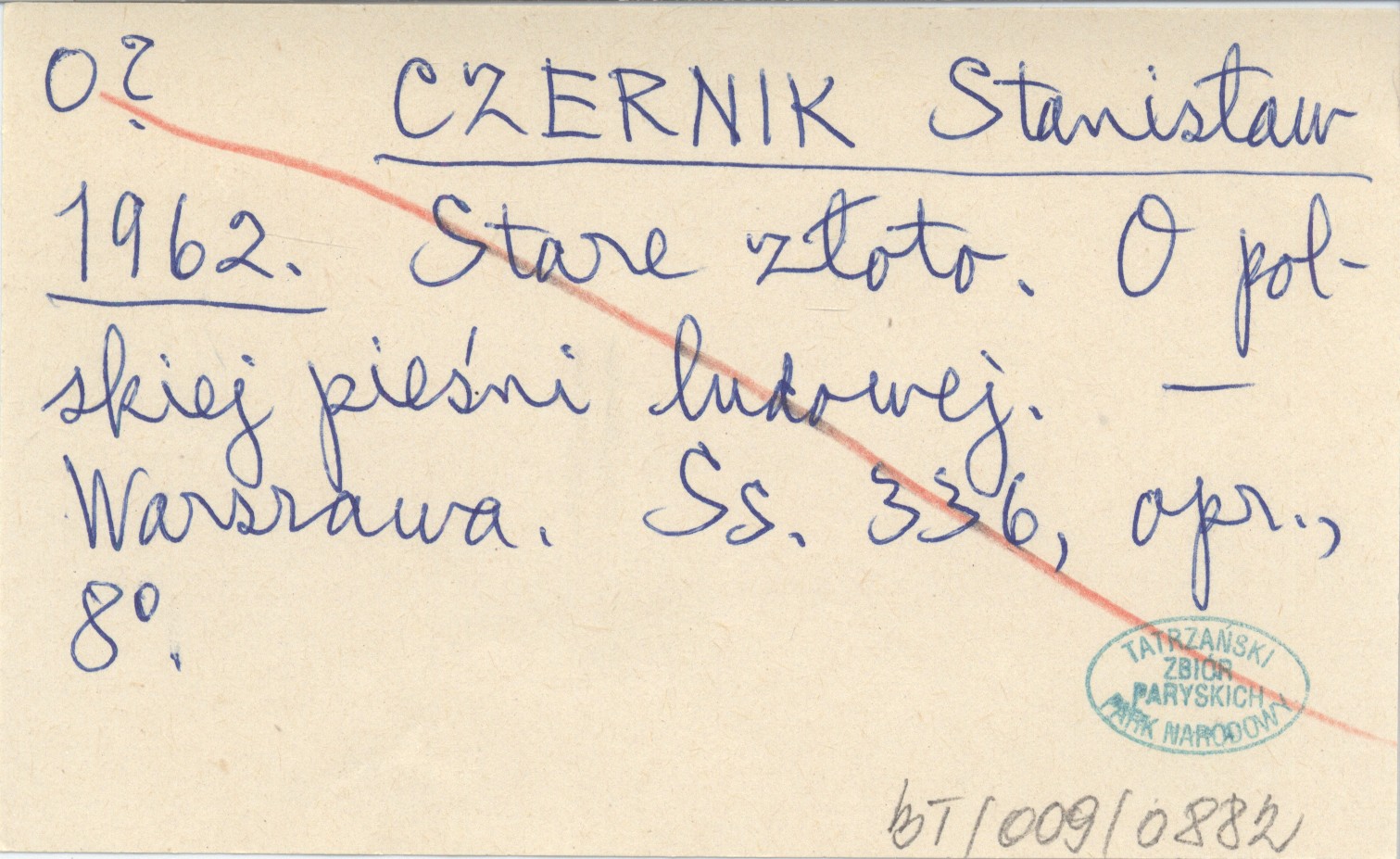 CZERNIK Stanisław 1962 Stare złoto. O polskiej pieśni ludowej.