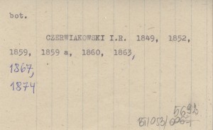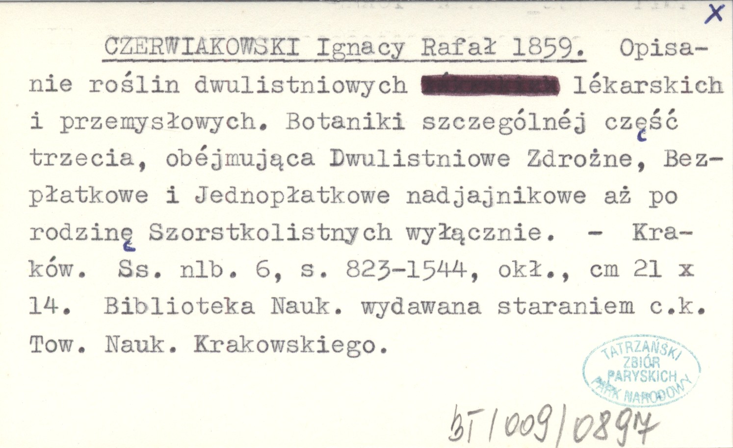 CZERWIAKOWSKI Ignacy Rafał 1859 Opisanie roślin dwulistnych lékarskich i przemysłowych. Botaniki szczególnéj część trzecia, obéjmująca Dwulistniowe Zdrożne, Bezpłatkowe i Jednopłatkowe nadjajnikowe aż po rodzinę Szorstkolistnych wyłącznie.