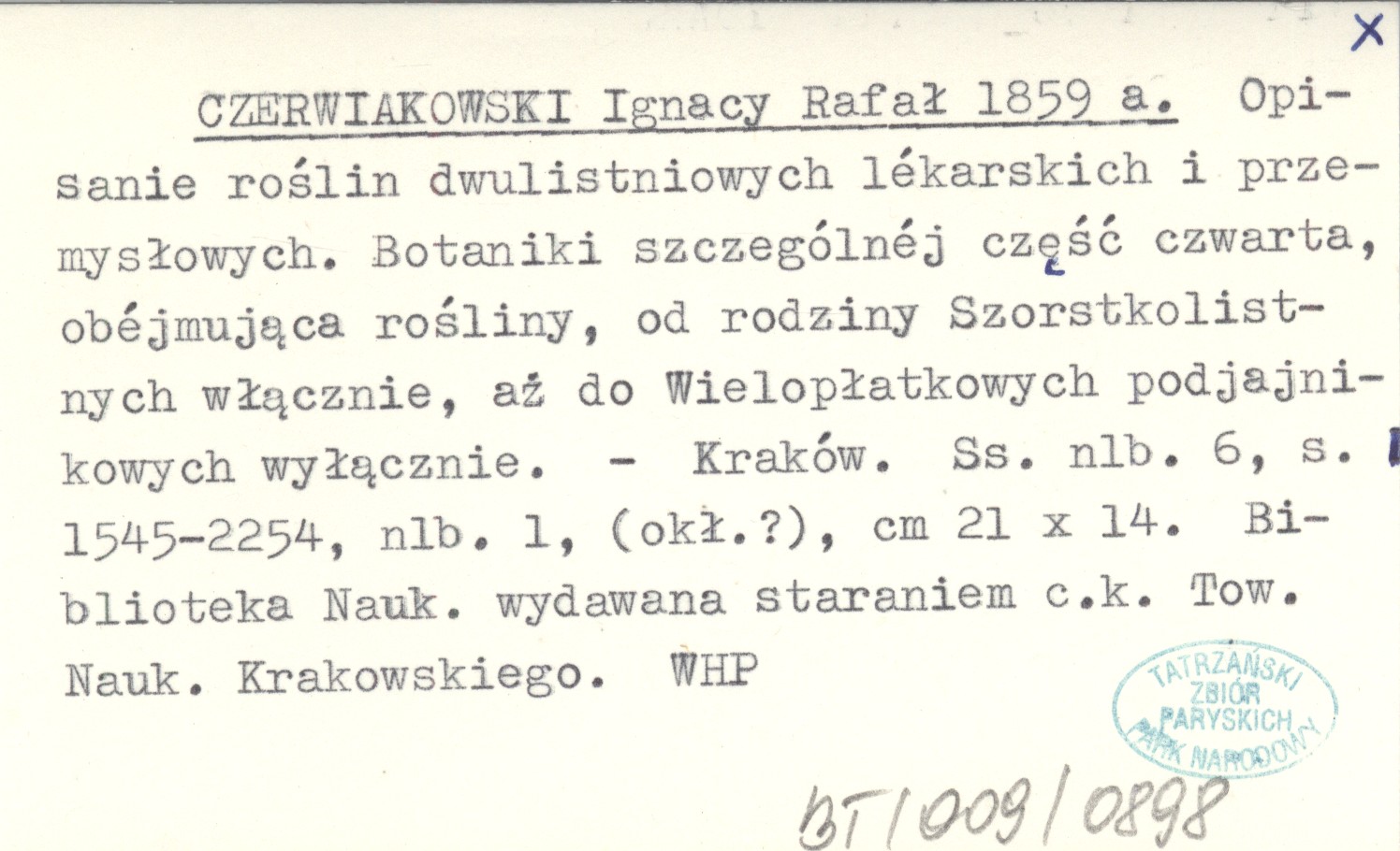 CZERWIAKOWSKI Zbigniew 1859 a Opisanie roślin dwulistnych lékarskich i przemysłowych. Botaniki szczególéj część czwarta, obéjmująca rośliny, od rodziny Szorstkolistnych włącznie, aż do Wielopłatkowych podjajnikowych wyłącznie.