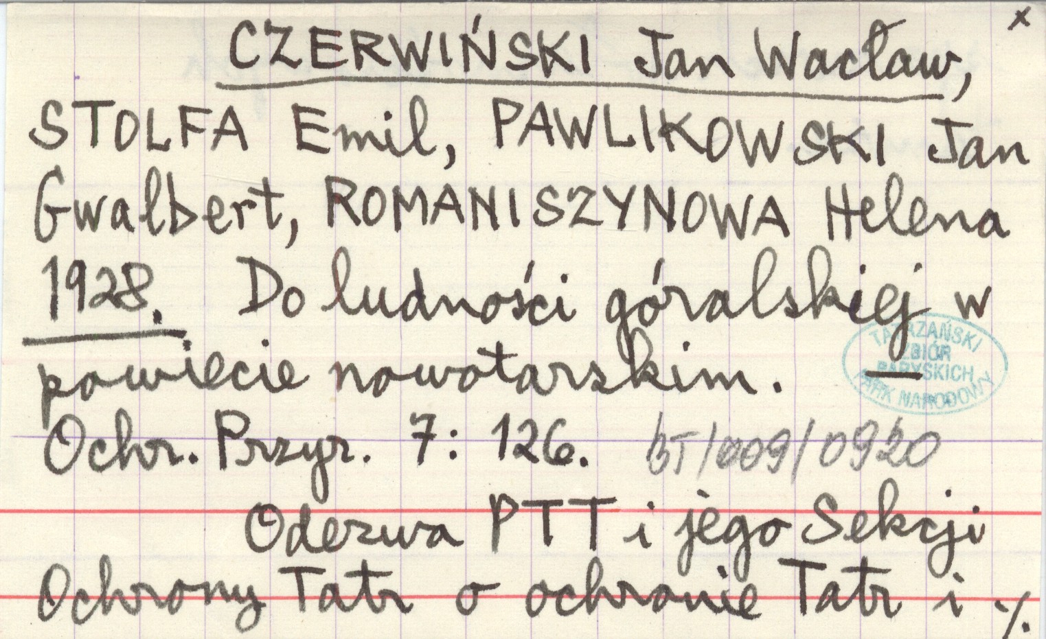 Ochrona Przyrody, 7: 126. Odezwa PTT i jego Sekcji Ochrony Tatr o ochronie Tatr i sprawach własnościowych tamże.