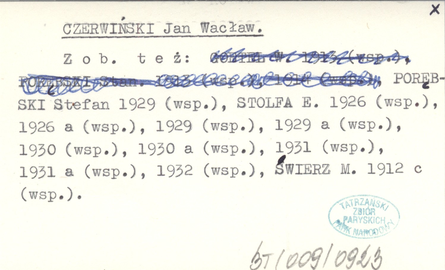PORĘBSKI Stefan 1929 (wsp.) STOLFA E. 1926 (wsp.), 1926 a (wsp.), 1929 (wsp.), 1929 a (wsp.) STOLFA E. 1930 (wsp.), 1930 a (wsp.), 1931 (wsp.), 1931 a (wsp.), 1932 (wsp.)