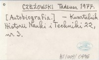CZEŻOWSKI Tadeusz 1977 [Autobiografia].