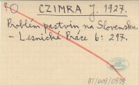 CZIMRA J. 1927 Problém pastvin na Slovensku.