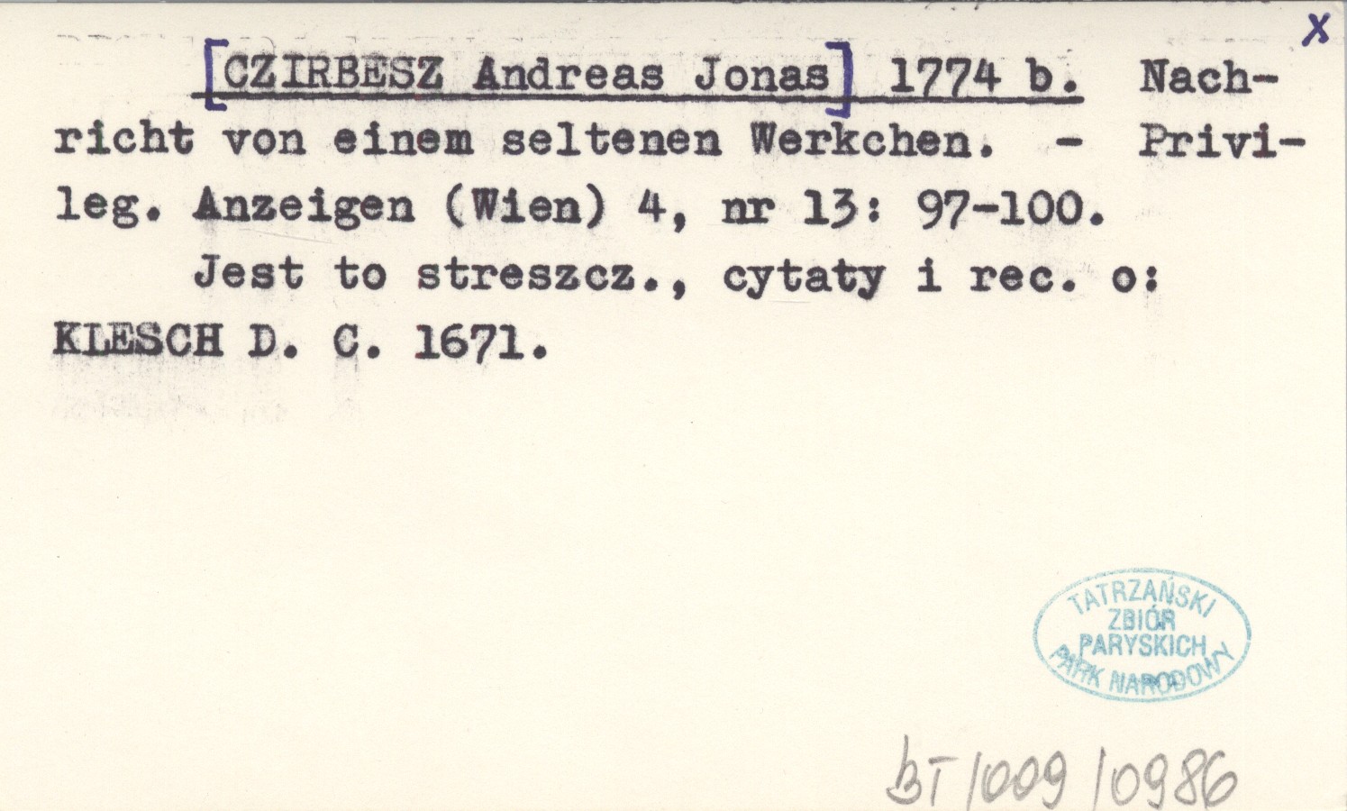 Privileg. Anzeigen (Wien) , 4, nr 13: 97-100. Jest to streszczenie, cytaty i recenzja o: KLESCH D. C. 1671.