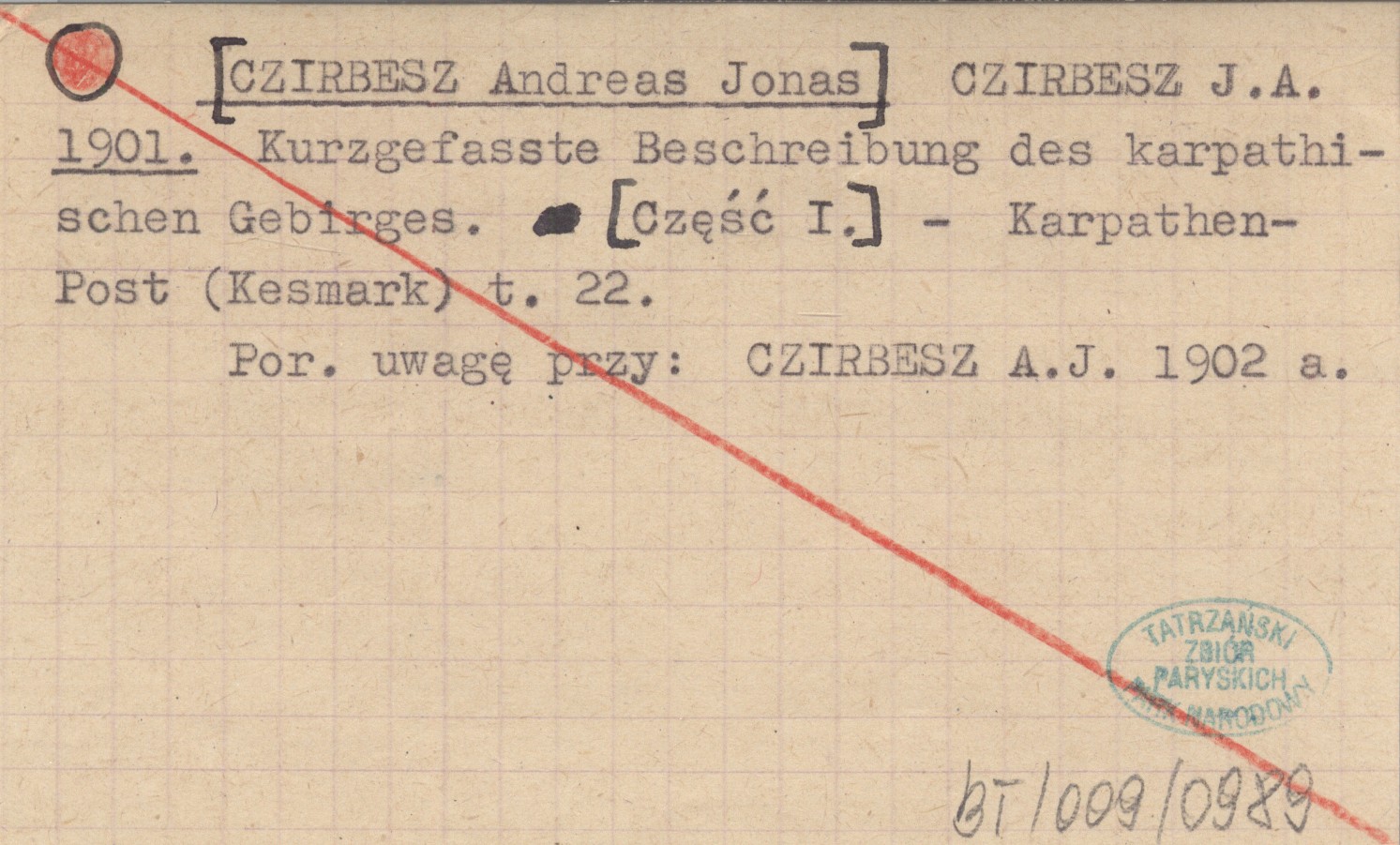 CZIRBESZ J. A. [CZIRBESZ Andreas Jonas] 1901 Kurzgefasste Beschreibung des karpatischen Gebirges. [Część I.].