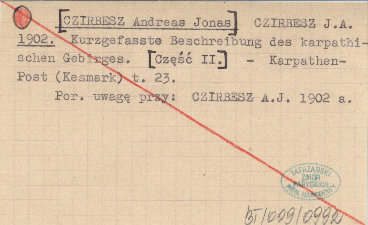 CZIRBESZ J. A. [CZIRBESZ Andreas Jonas] 1902 Kurzgefasste Beschreibung des karpatischen Gebirges. [Część II].