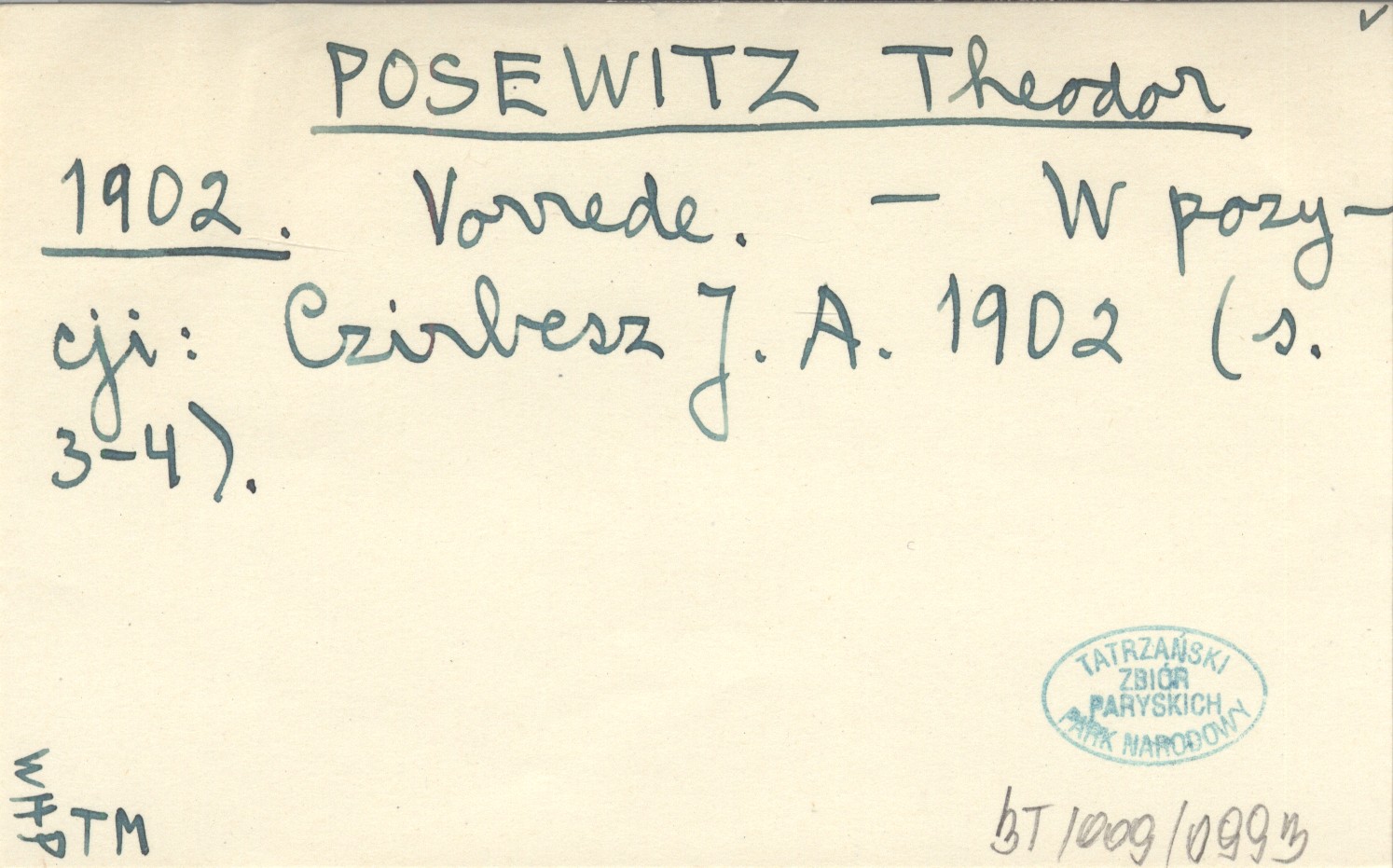 Kesmark , 51 s., 19x12 cm (12x18 cm). Przedmowa (Vorrede, na s. 3-4): Theodor Posewitz. Wspólna odbitka pozycji CZIRBESZ A.J. 1901, 1902. Jest to skrócony przedruk (z omyłkami) pozycji: CZIRBESZ A. J. 1772. Przedruk (skrócony wstęp i ustęp od. limb. ikos.) pozycji z dodaniem przedmowy: Posewitz T. 1902.