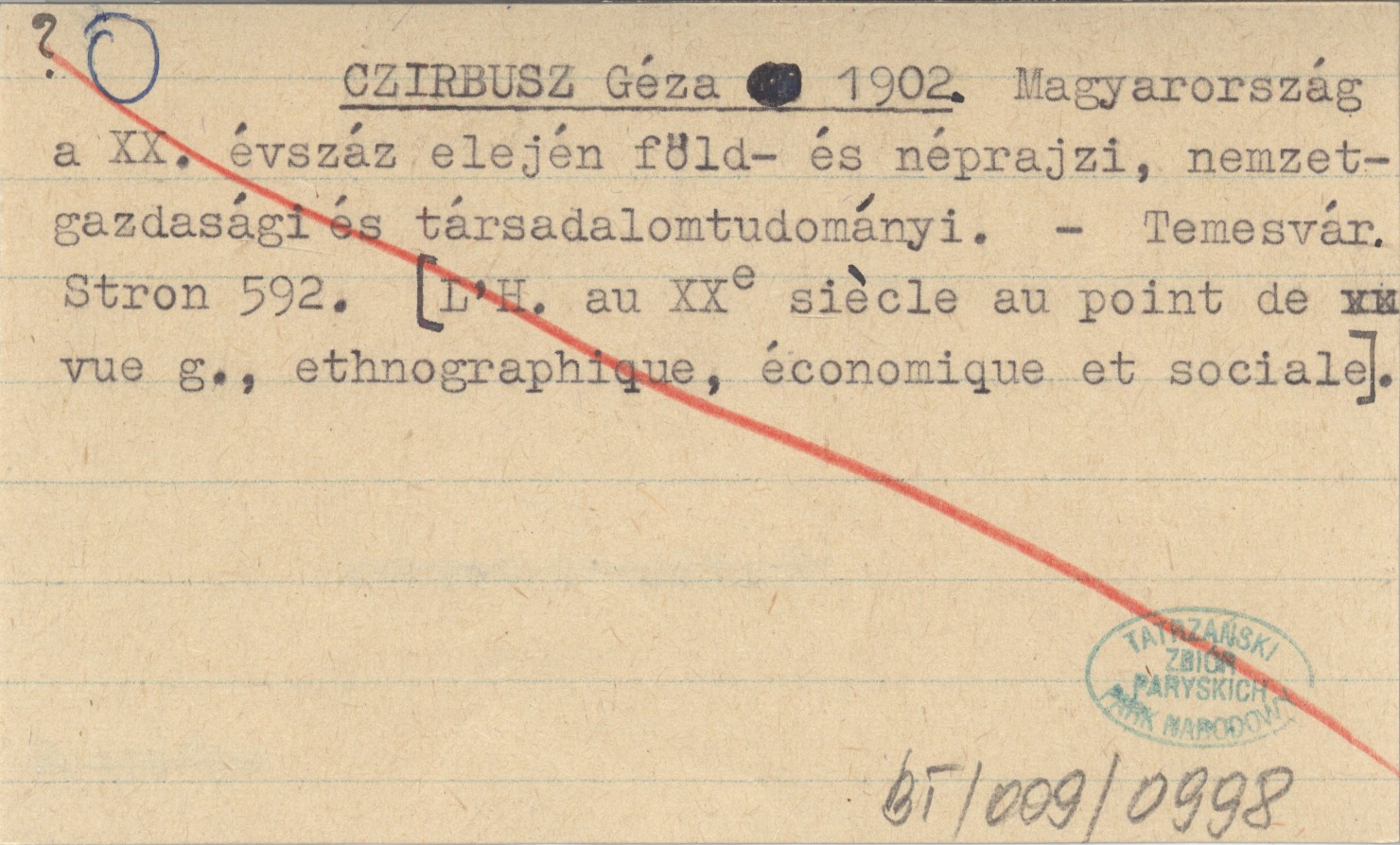 Temesvár , 592 s. Tytuł fr: L'H. au XXᵉ siècle qu point de vue g., ethnographiqie, économique et sociale.