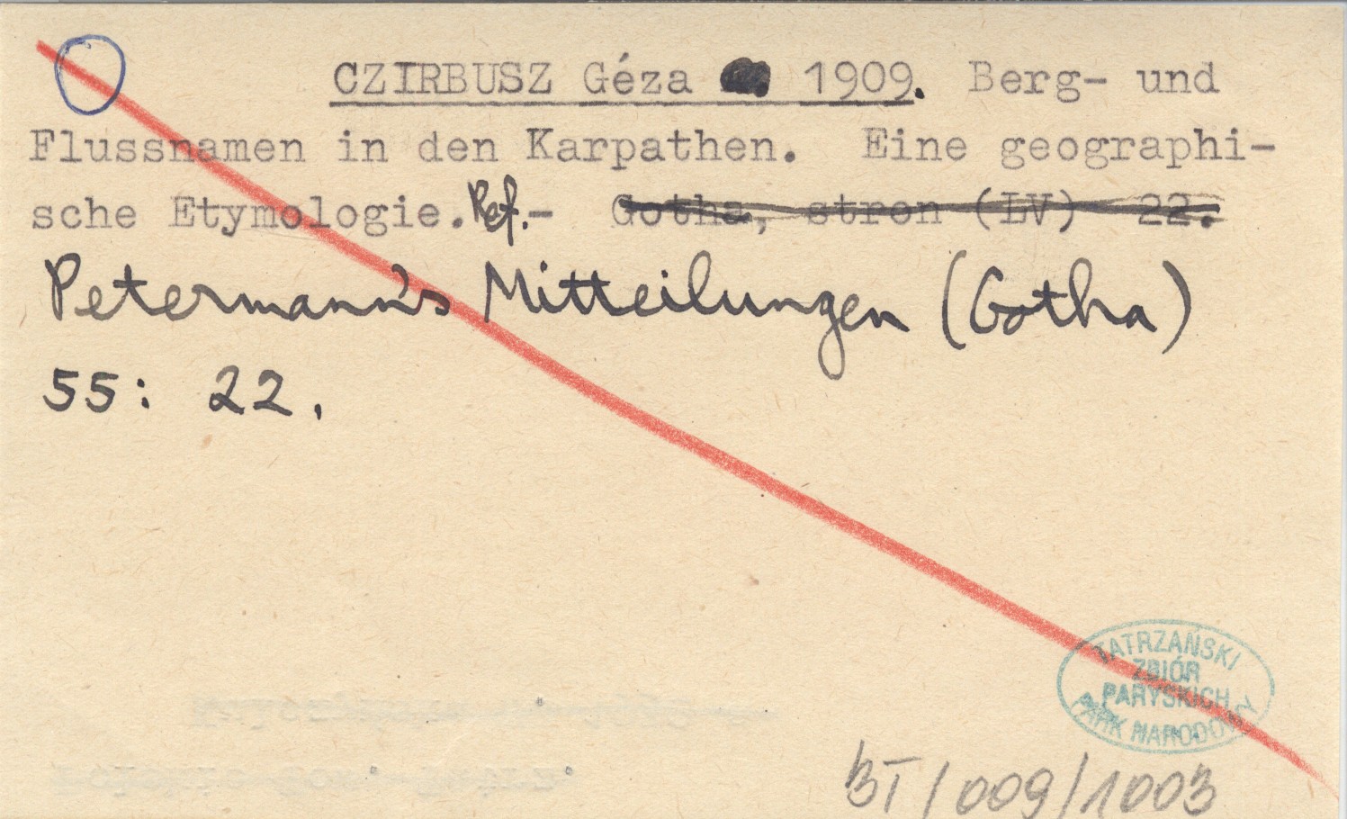 CZIRBUSZ Géza 1909 Berg- und Flussnamen in den Karpathen. Eine geographische Etymologie. Ref.