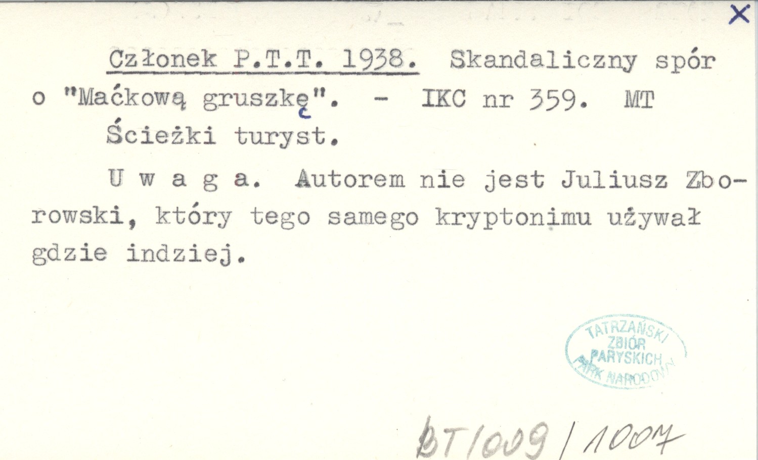 Członek P.T.T. 1938 Skandaliczny spór o "Maćkową gruszkę".