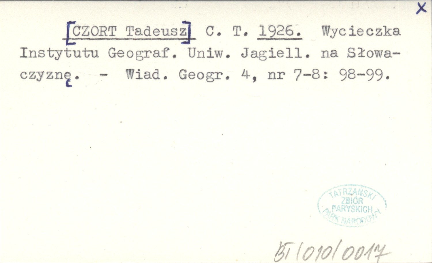 C. T. [CZORT Tadeusz] 1926 Wycieczka Instytutu Geograf. Uniw. Jagiell. na Słowaczyznę.