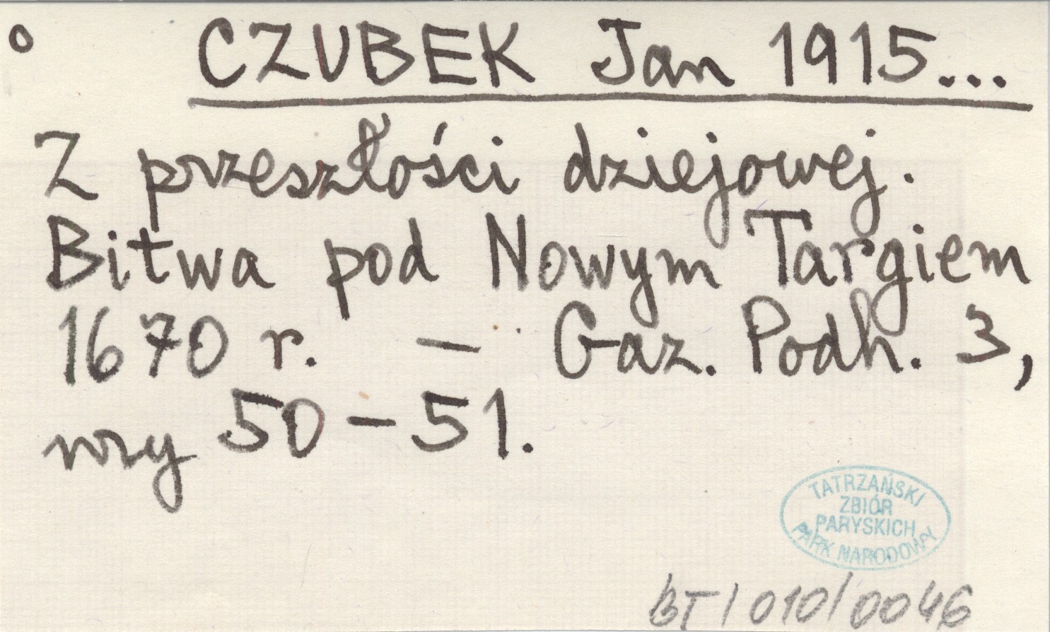 CZUBEK Jan 1915... Z przeszłości dziejowej. Bitwa pod Nowym Targiem 1670 r.