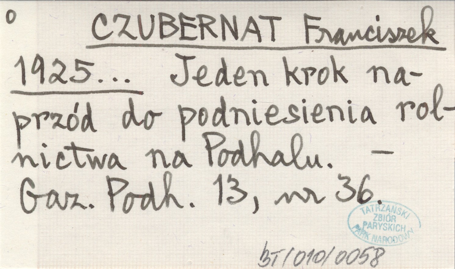CZUBERNAT Franciszek 1925... Jeden krok naprzód do podniesienia rolnictwa na Podhalu.