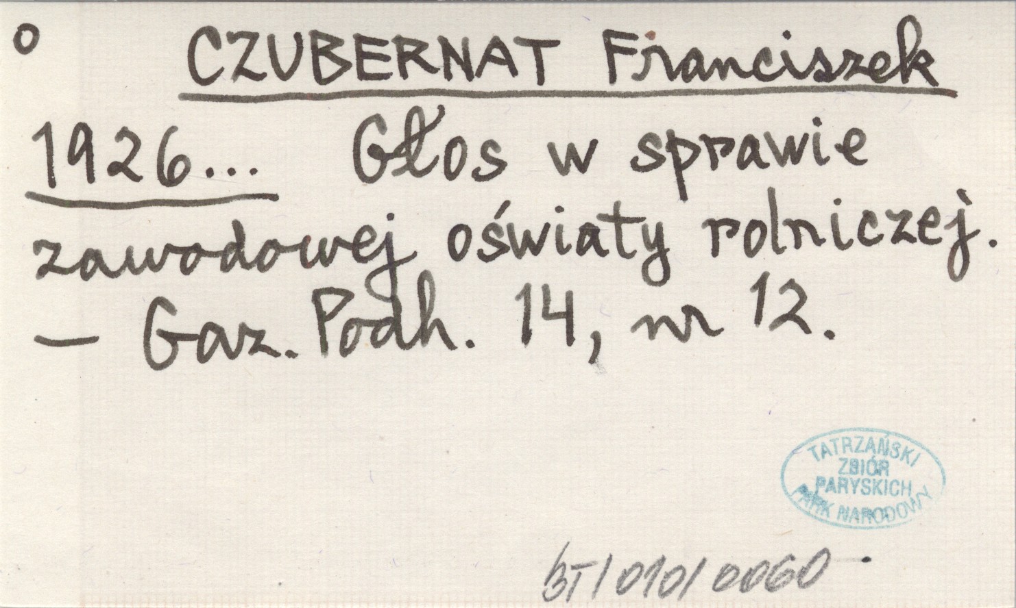 CZUBERNAT Franciszek 1926... Głos w sprawie zawodowej oświaty rolniczej.