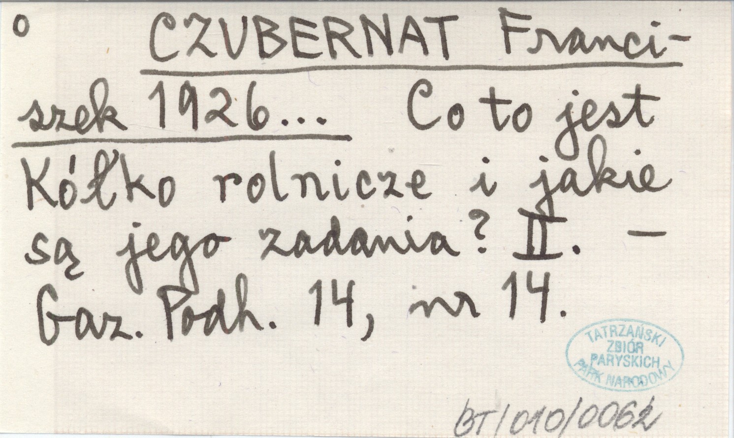 CZUBERNAT Franciszek 1926... Co to jest Kółko rolnicze i jakie są jego zadania? II.