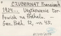 CZUBERNAT Franciszek 1924... Użytkowanie torfowisk na Podhalu.