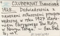 CZUBERNAT Franciszek 1928... Doświadczenia z nawozami sztucznemi przeprowadzone w roku 1927 staraniem Okręgowego Tow. Roln. w Nowym Targu.