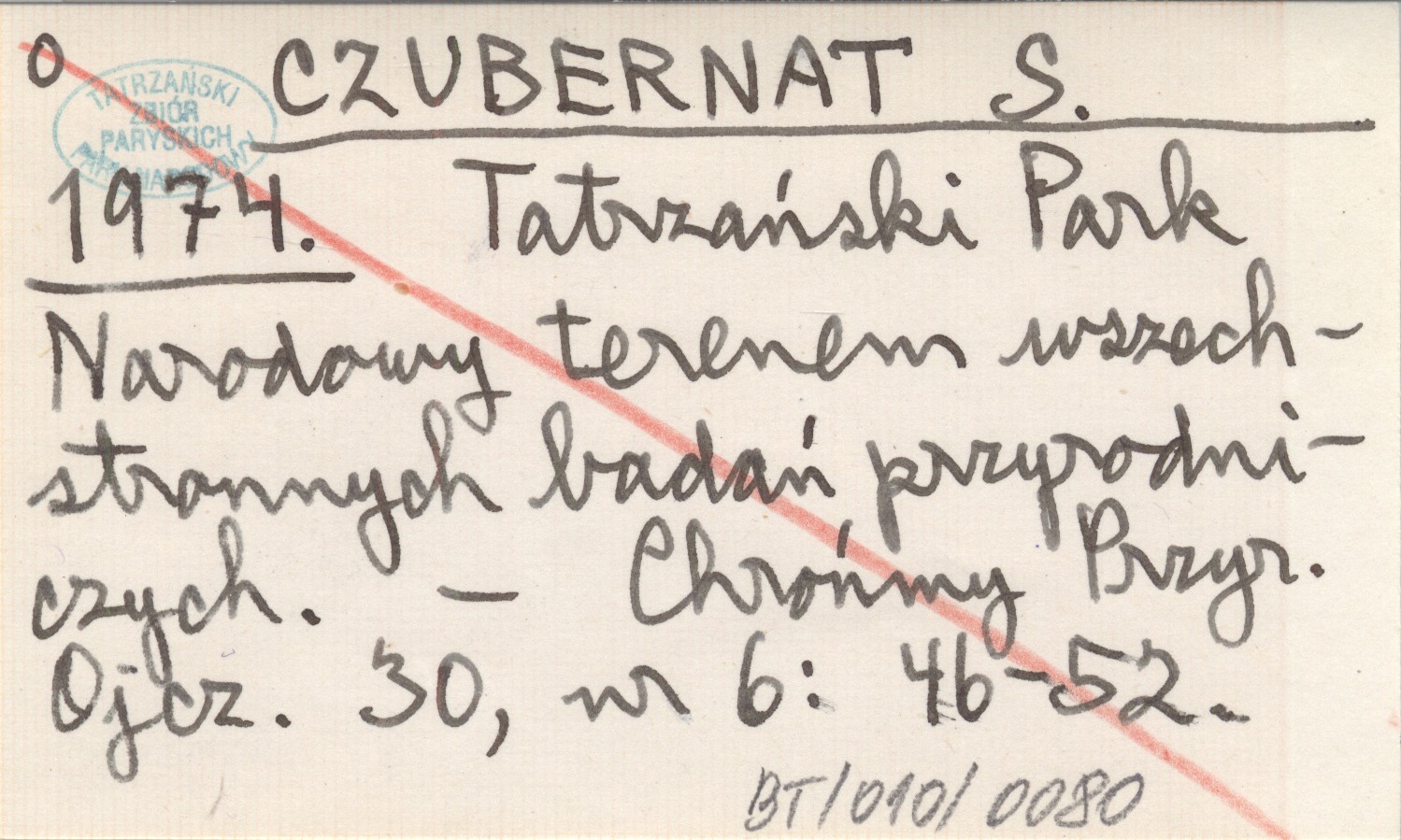 CZUBERNAT S. 1974 Tatrzański Park Narodowy terenem wszechstronnych badań przyrodniczych.