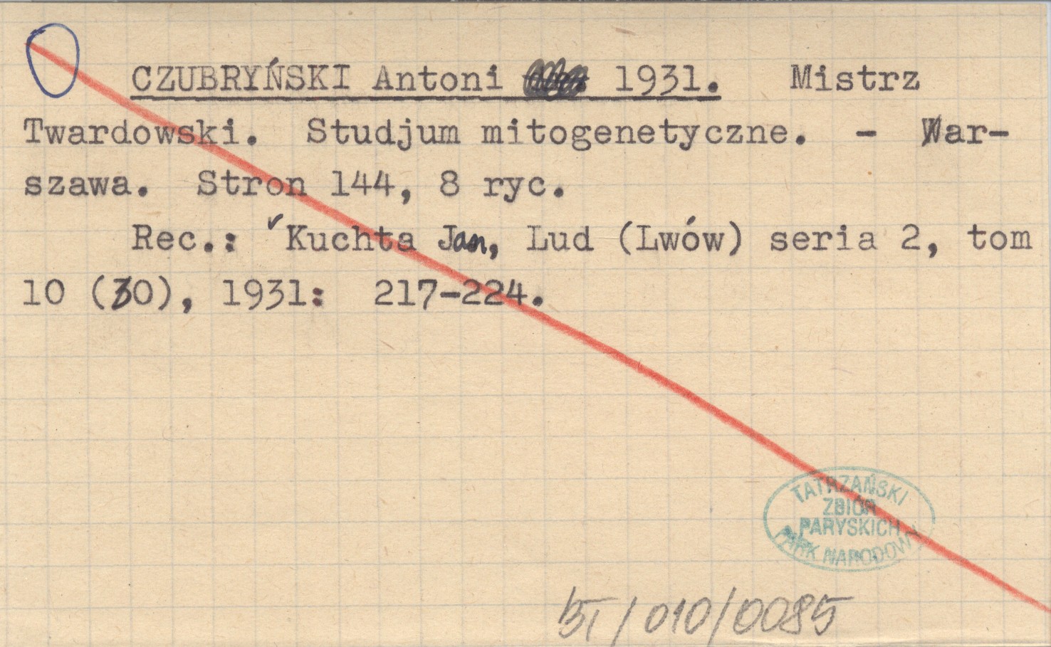 CZUBRYŃSKI Antoni 1931 Mistrz Twardowski. Studjum mitogenetyczne.