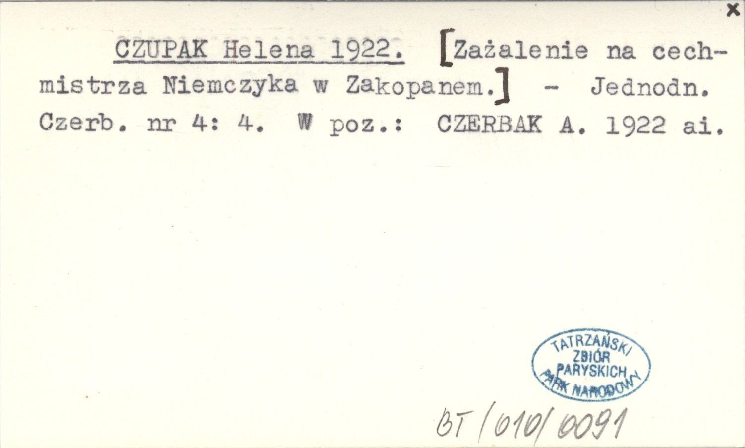 CZUPAK Helena 1922 [Zażalenie na cechmistrza Niemczyka w Zakopanem].