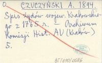 CZUCZYŃSKI A. 1894 Spis żydów wojew. Krakowskiego z 1765 r.